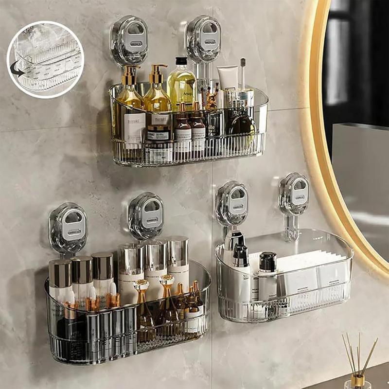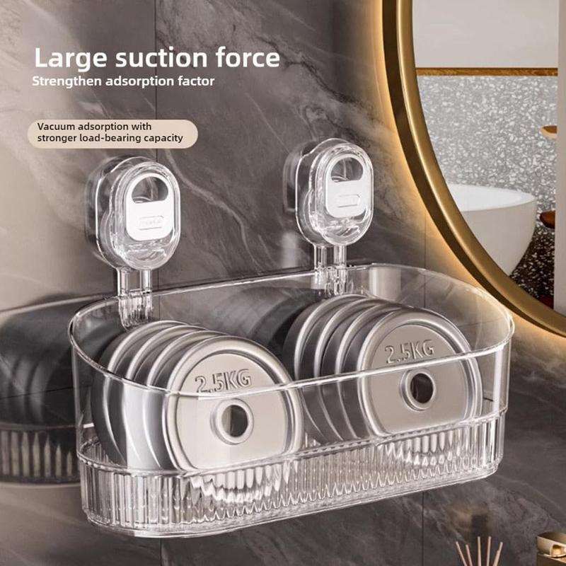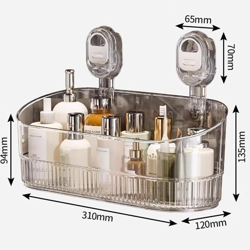 No-Drill Bathroom Suction Storage Rack -2025 Upgrade Large Capacity & Strong Load-Bearing Transparent White Double Row Drainage Hole Detachable Easy Clean Shower Kitchen Organizer
